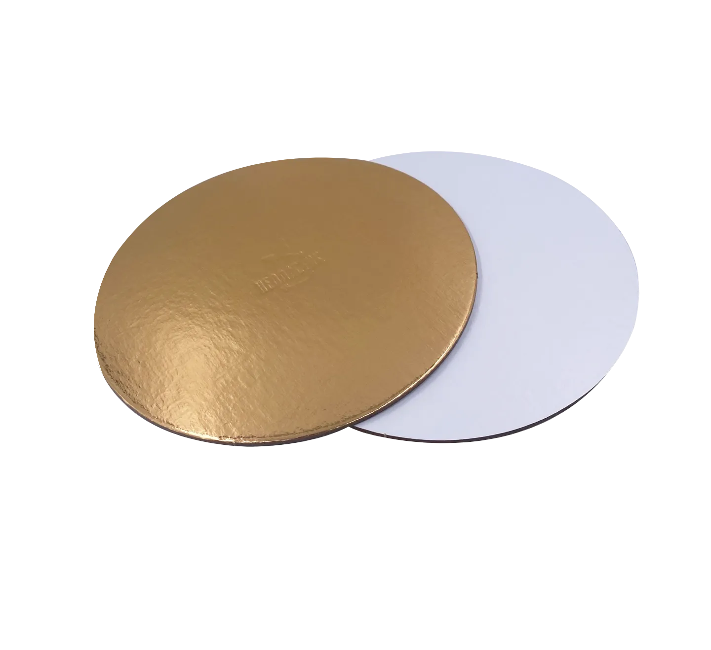Изготовлена из картона и покрыта металлизированной пленкой, что оберегает подложку от размокания. Подложка придает товару привлекательный вид, а так же упрощает его транспортировку. Применяется в основном для тортов и кондитерских изделий.