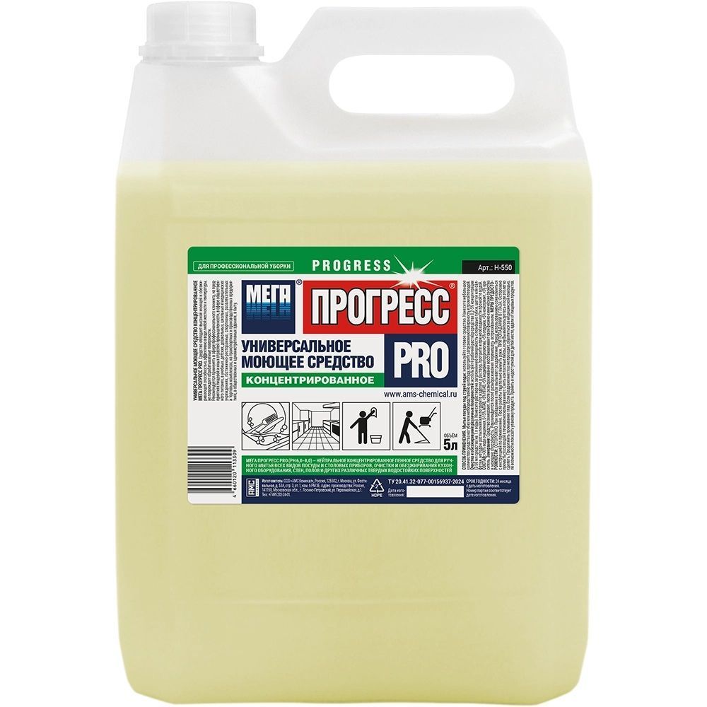 Моющее средство «Мега Прогресс ПРО» 5 л универсал — сильное, но при этом нейтральное по pH концентрированное средство для всего дома, которое заменяет сразу несколько разных очистителей. Его можно использовать и как средство для посуды, и как универсальный очиститель для кухни, ванной и пола.