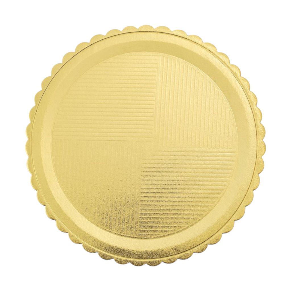 Поднос картонный круглый золотого цвета для тортов и пирожных. Диаметр 42 см. Толщина 3 мм.