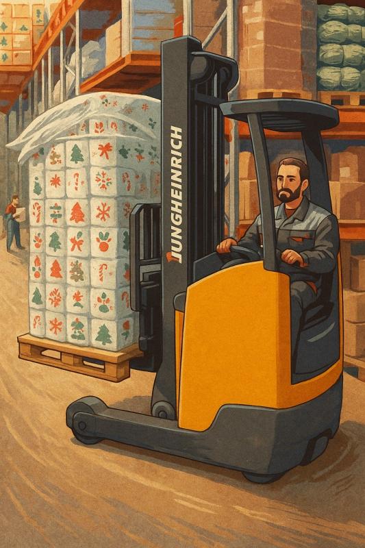 Сегодня он управляет электроштабелером на чистом, теплом складе,