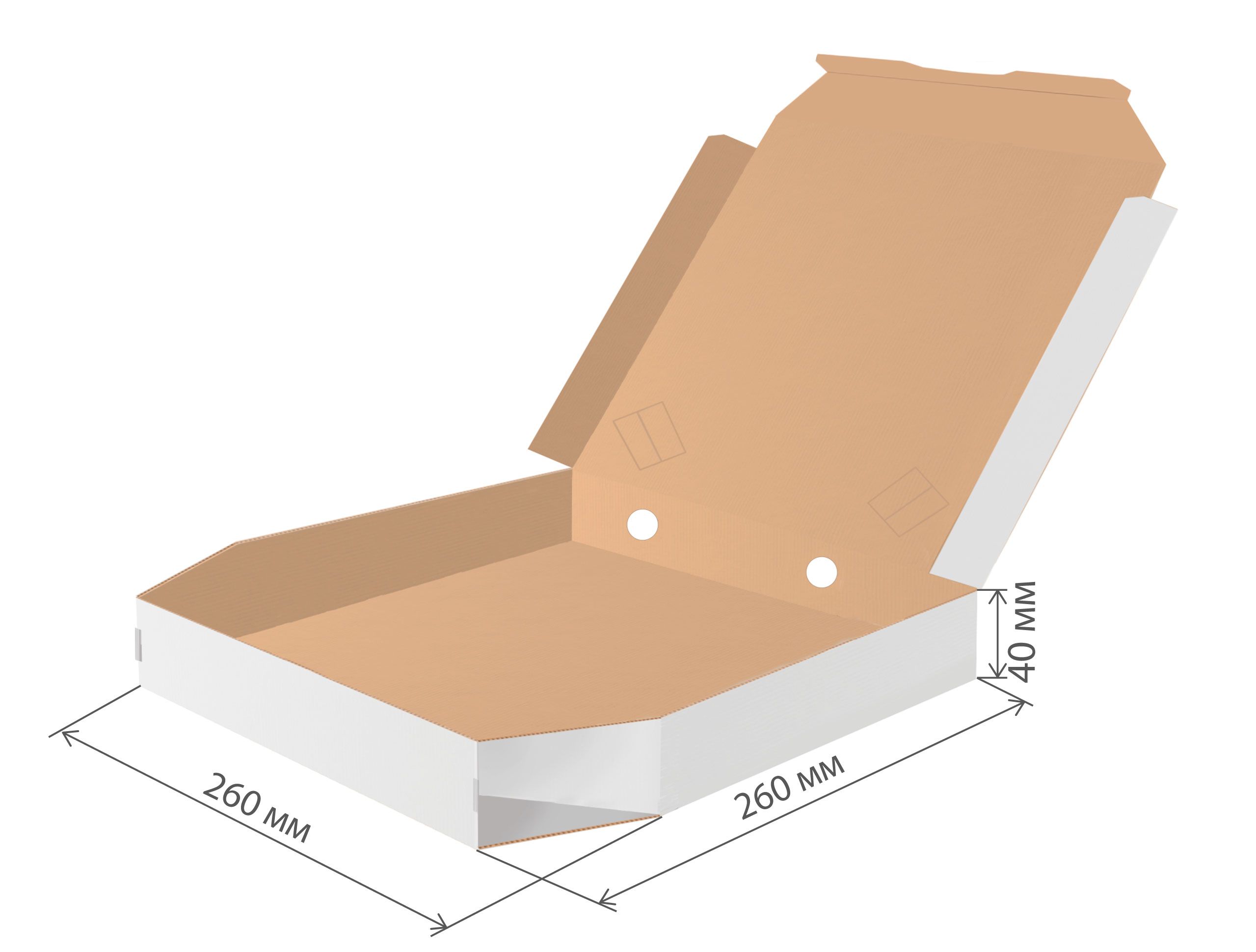 коробка под пиццу микрогофрокартон 260х260х40 скошенные углы бел/бур *