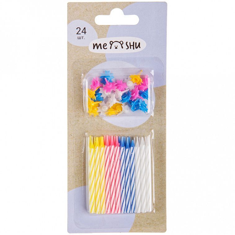 Эти разноцветные свечи с подставками в комплекте станут прекрасным украшением праздничного десерта.