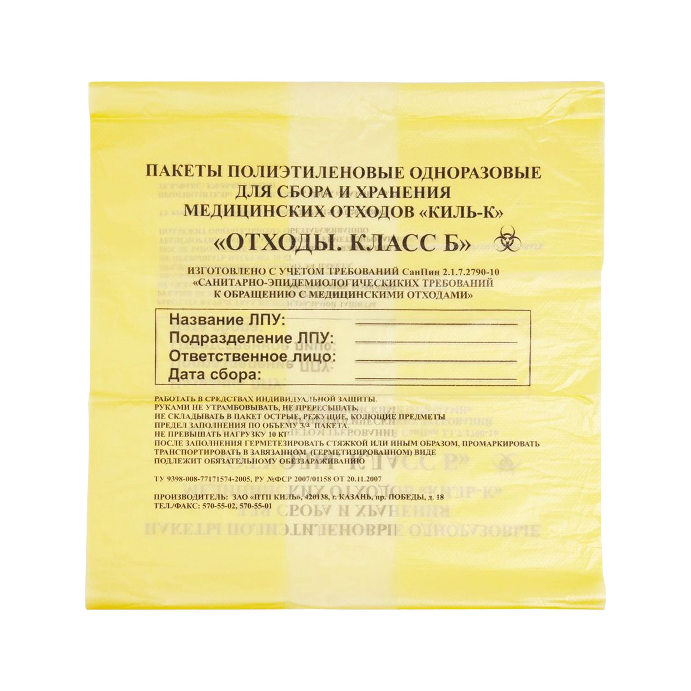 пакеты для медицинских отходов 700х800 60л Класс Б/20 ЭКО