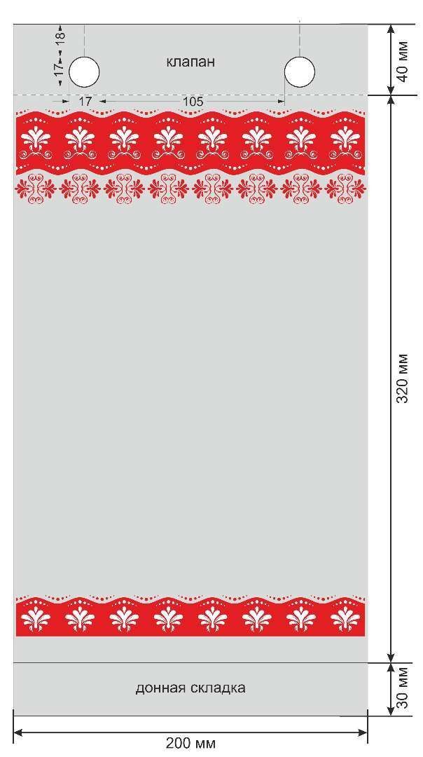 Размер пакета: 200х320+30 мм (ширина х длина + донная складка).