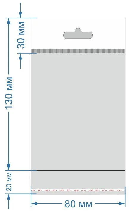 Размер пакета: 80х130 мм, с клеевым клапаном 20 мм. Материал: жемчужный полипропилен 25 мкм. В упаковке 100 штук.