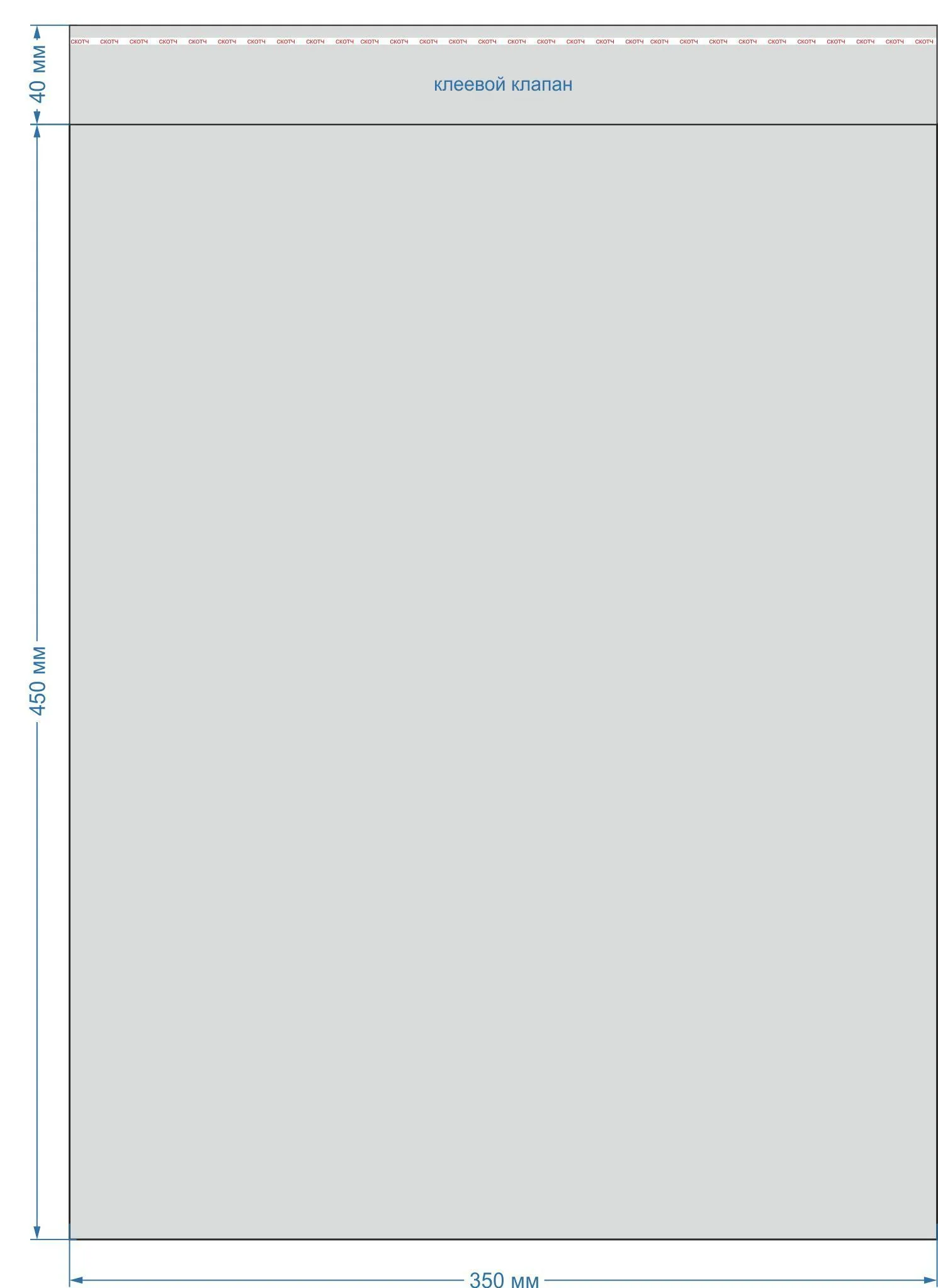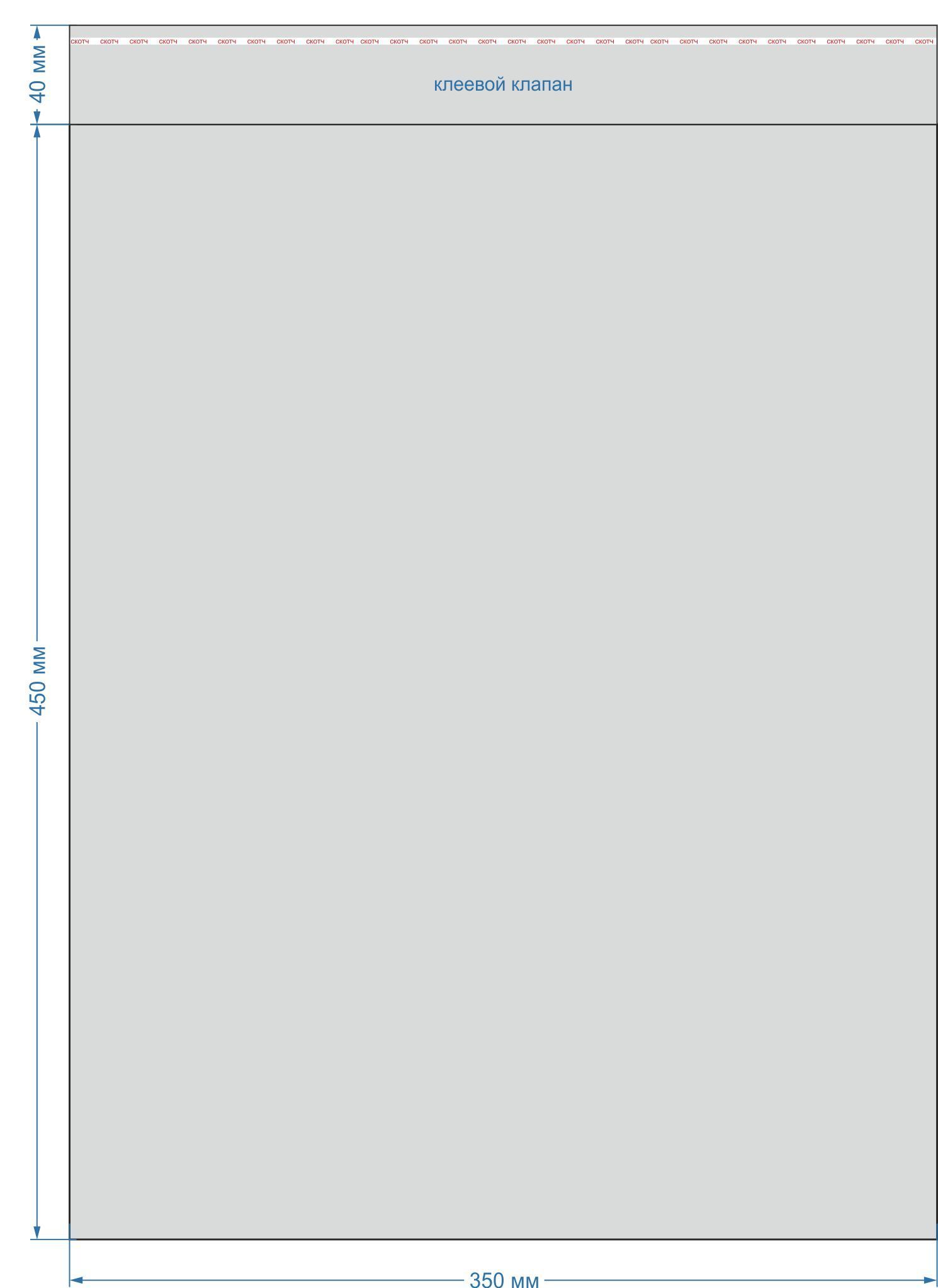 Размер пакета: 350х450 мм, с клеевым клапаном 40 мм. Толщина: 25 мкм. В упаковке 100 штук.