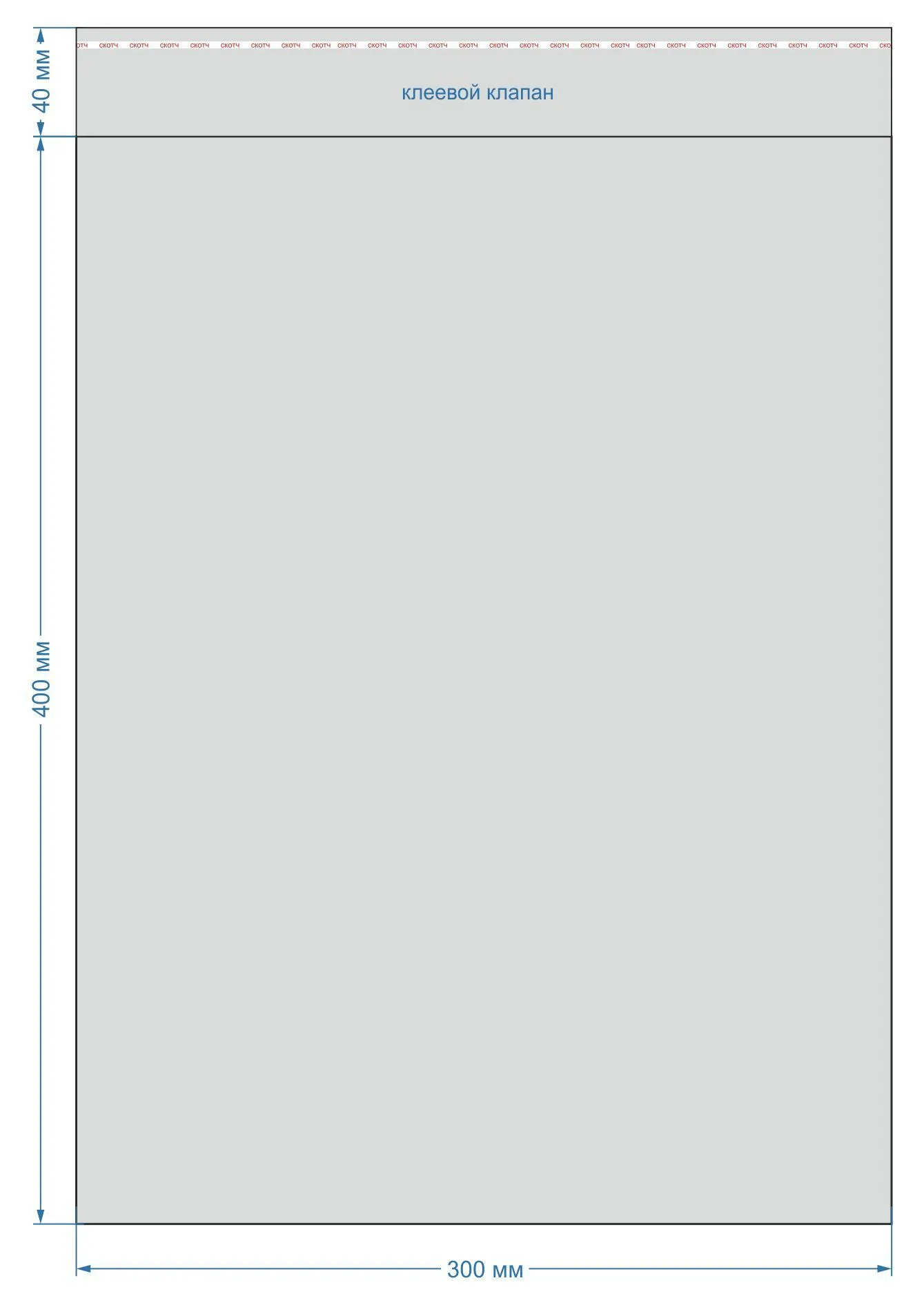 Размер пакета: 300х400 мм, с клеевым клапаном 40 мм. Толщина: 25 мкм. В упаковке 100 штук.