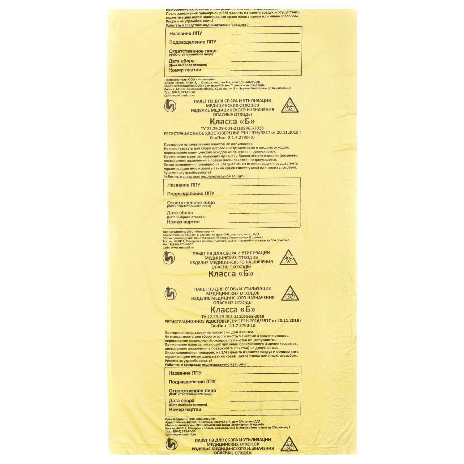 пакеты для медицинских отходов 600х1000 90л 18мкм Класс Б/20