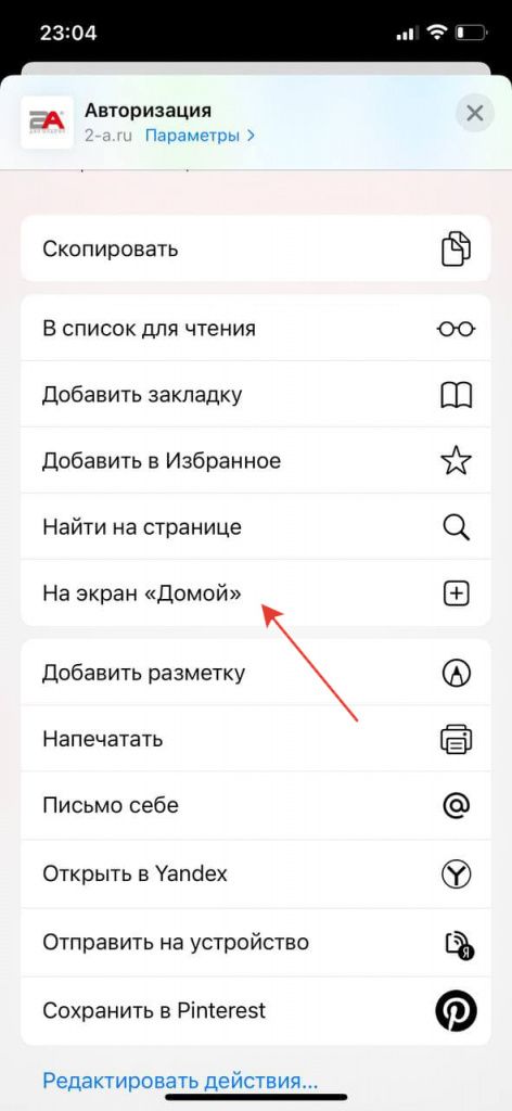 - Выбрать пункт "На экран Домой"